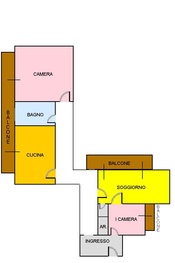 Ad oggi la metratura è così disposta: ingresso, prima camera da letto, lungo corridoio che conduce ad un ampio salone doppio, alla cucina abitabile, alla seconda camera da letto ed al bagno con finestra e vasca. Tutti gli ambienti godono di un'esposizione, interna e su strada principale, da ampie balconate.